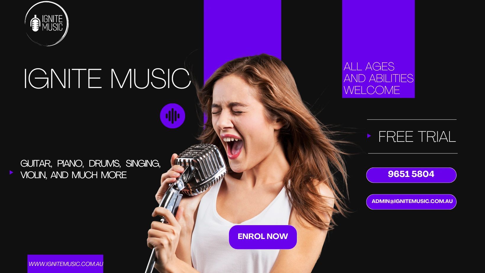 Piano lessons, singing classes, guitar, drums, AMEB, band and more — whatever your passion, Ignite Music offers the best music lessons in the Hills District. All ages, all levels, all fun. Let’s make music together!